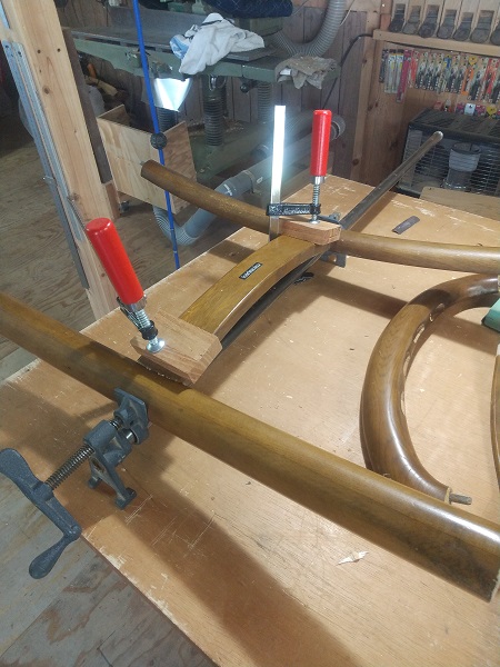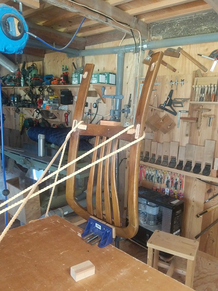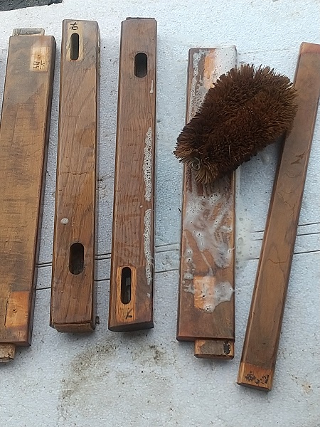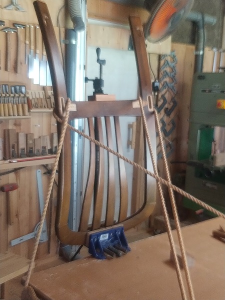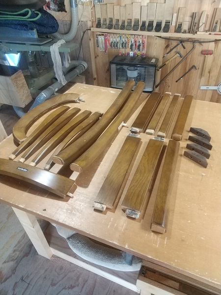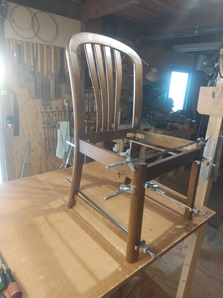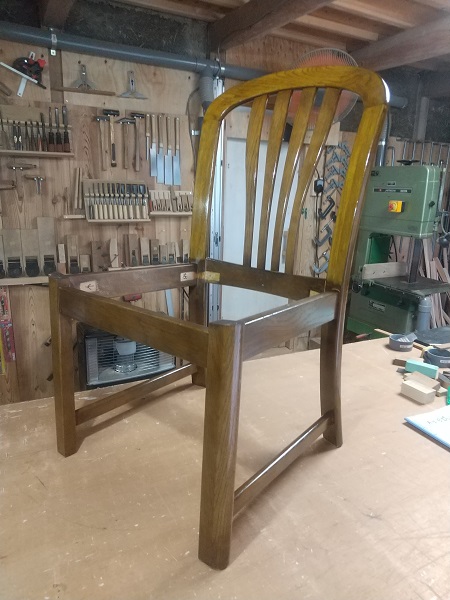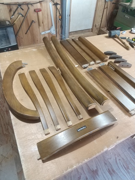早速、全体をばらして、丁寧に水洗いした後に組付けていきました。 組付けの段階で、背もたれの接合はダボでの接合になっており、専用の治具が無い中での接着作業に少し手間取りました。 一度完成した後に、お客様より背もたれの部分が、一部接合が緩いとのご指摘があり、再度その部分を重点的に接着剤を注入して数日のテストを経た後にお渡ししました。 これからも末永くお使いいただけると嬉しい限りです。 ダイニングチェアーの修理のアルバム*画像をクリックすると原寸で表示します。 |